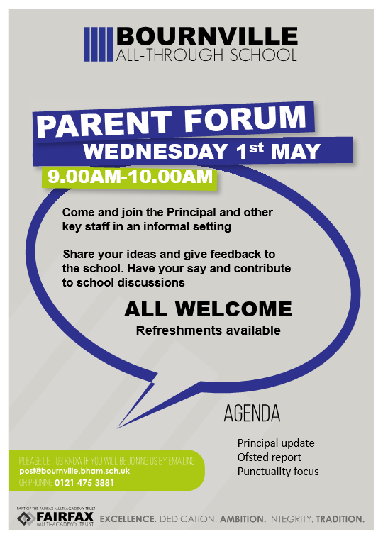 Please notify the school if you would like to attend via e-mail post@bournvilleschool.org.uk