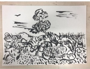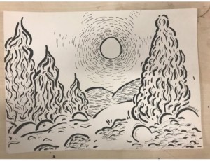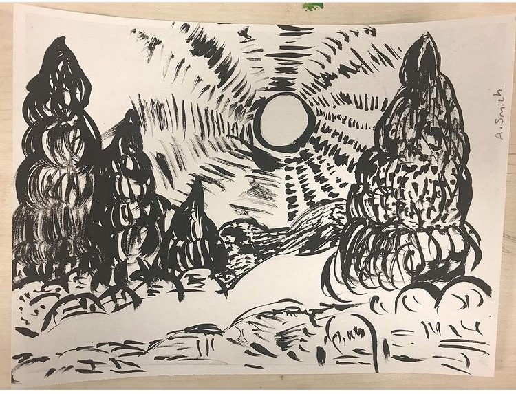 Vincent van Gogh often created landscapes using ink and willow sticks, Year 8 used these exact materials to create these expressive landscapes.
