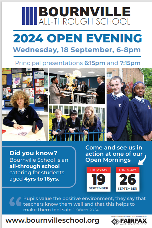 Every year, Bournville opens its doors and welcomes prospective students to see what life is like at our all-through School.